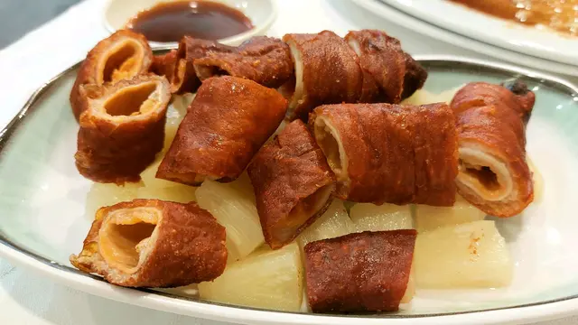 由於蝦和蠔都小隻,感覺好像沒吃過什麼,於是最後多點了一道“菠蘿炸大腸” ... 味道好,皮夠脆,酸甜汁也不錯,但比較韌,扣了點分,不過,我太愛吃菠蘿了,雖然那只是罐頭糖水菠蘿,但都給我吃光了。