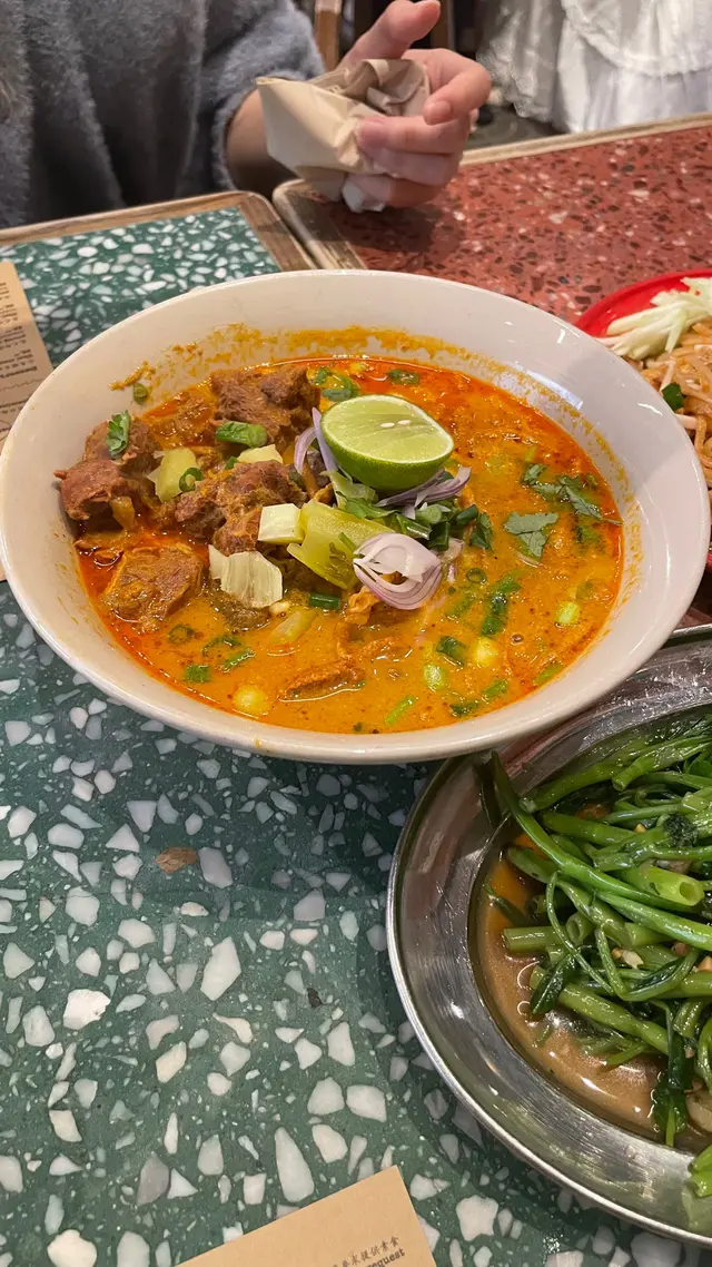 咖喱湯底好濃郁,椰奶味都重,佢嘅面係比較硬身同埋曲扁嘅,好有咬口,啲牛就煮得好淋,吸晒湯汁好濃郁😋