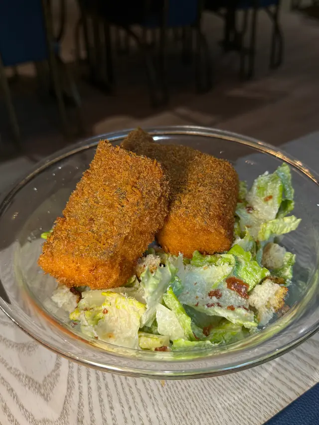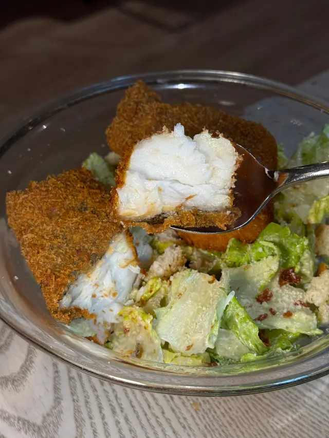 比目魚超級大件😍外皮炸到金黃酥脆,外皮脆到癲,但係魚肉竟然仲好juicy,好嫩滑😋羅馬生菜爽脆多汁,撈埋凱撒醬,油香與清新完美平衡!🐟🥗