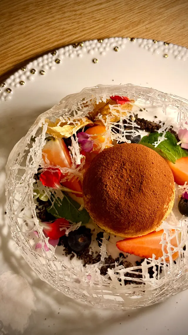 外型好搶眼,用糖整左個半圓外殼,可以自己扑碎黎食。tiramisu 咖啡味溫和,cream好輕盈,完全零負擔。