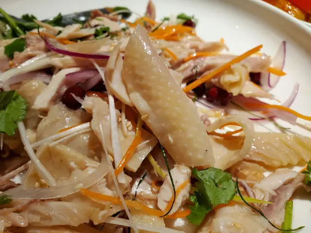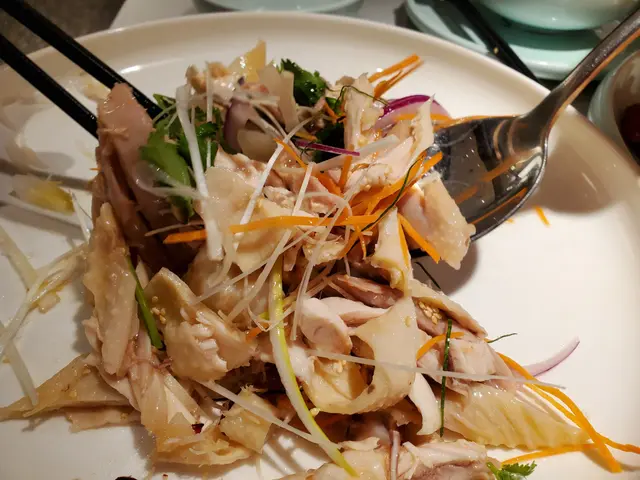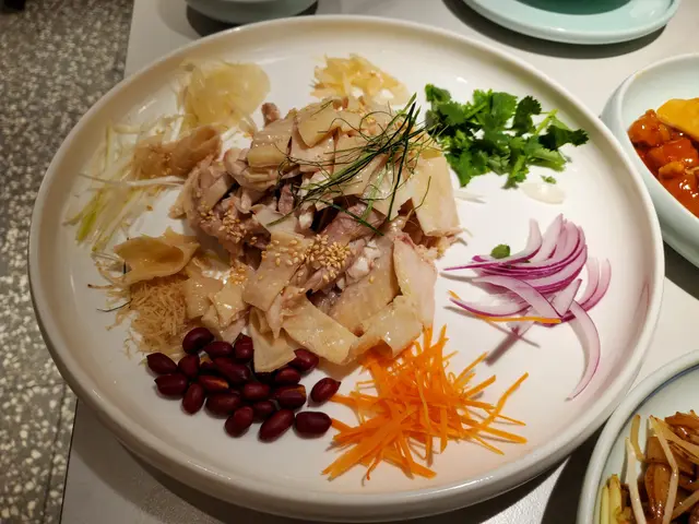上枱成個拼盤咁,雞件、炸芋絲、花生、酸薑、蔥絲分開擺,