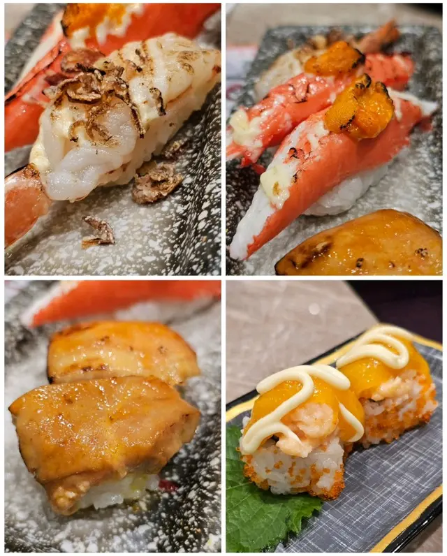 必食的壽司有燒鵝肝醬和牛壽司、柚子油甘魚腩、醬燒蟹棒及香芒甜蝦沙律卷