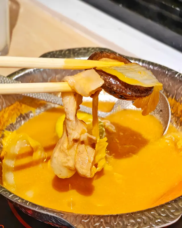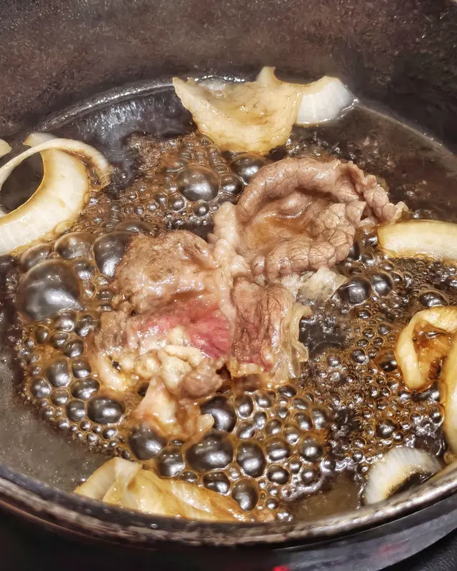 我揀咗壽喜燒套餐🍲選配130g和牛赤身A4+ 😍,和牛肉質帶住少少大理石花紋,赤身部位唔會咁油膩🤩,喺鍋入面落牛脂加熱🧈然後放洋蔥🧅再加入特製壽喜燒汁煮牛肉🥢,微甜嘅醬汁將和牛汁煮至軟腍🤤,沾埋生蛋汁一齊食👅,牛味香濃又鮮嫩,真係好滿足呀!
