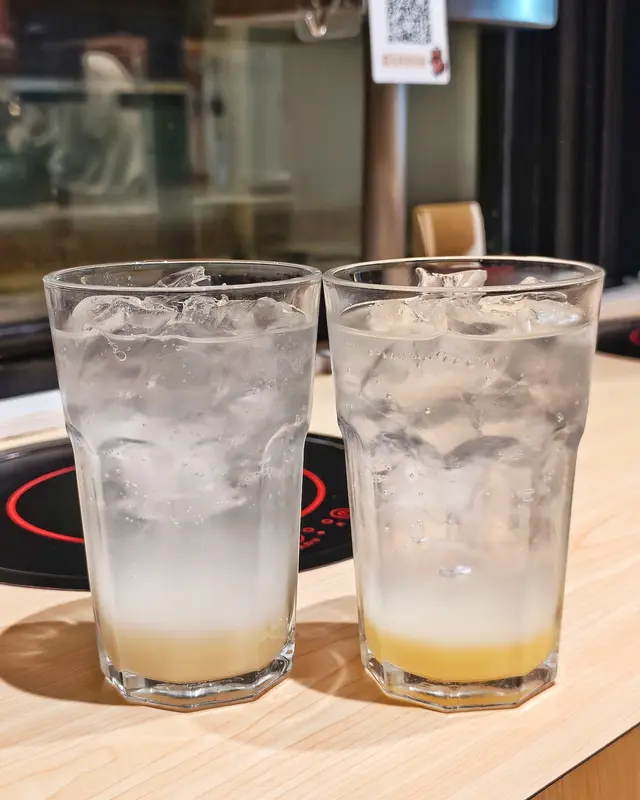 一入座就有驚喜🎉,打卡上載到社交平台tag返店家✨就可以免費獲得飲品一杯🍹,我哋揀咗可爾必思梳打同海鹽白桃梳打💙。可爾必思帶住清爽乳酸味🥛配合氣泡口感好refreshing😌,海鹽白桃梳打就更加香甜誘人🍑微微嘅海鹽提升咗成個桃味👍🏻。