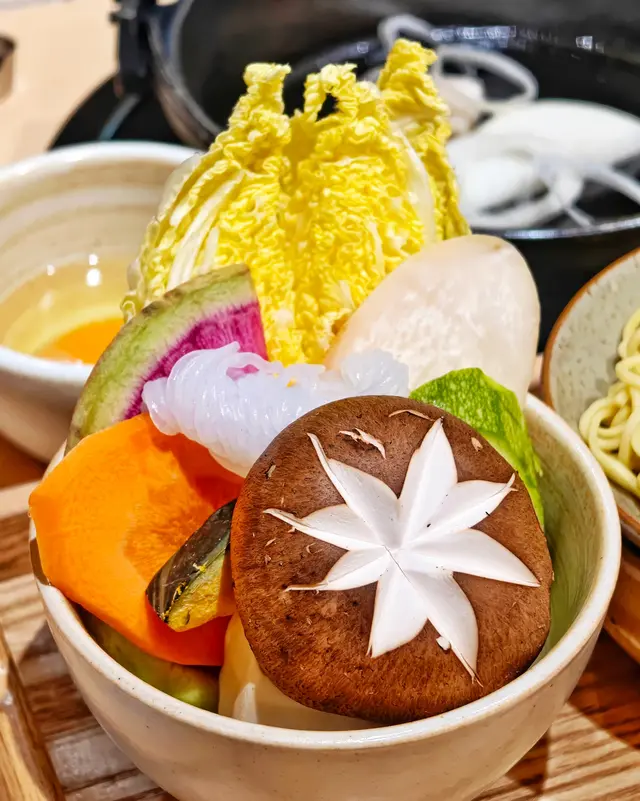 套餐仲包埋色彩繽紛嘅蔬菜拼盤🥬,兩款鍋都為蔬菜注入精彩嘅香甜味道🌱,食得超滿足。主食方面可以揀北海道米飯🍚、拉麵或者烏冬🍜,份量都好足夠👍,將主食放入湯底煮成雜炊🍲吸收晒成個鍋同肉嘅精華💕,真係和味到不得了👏!