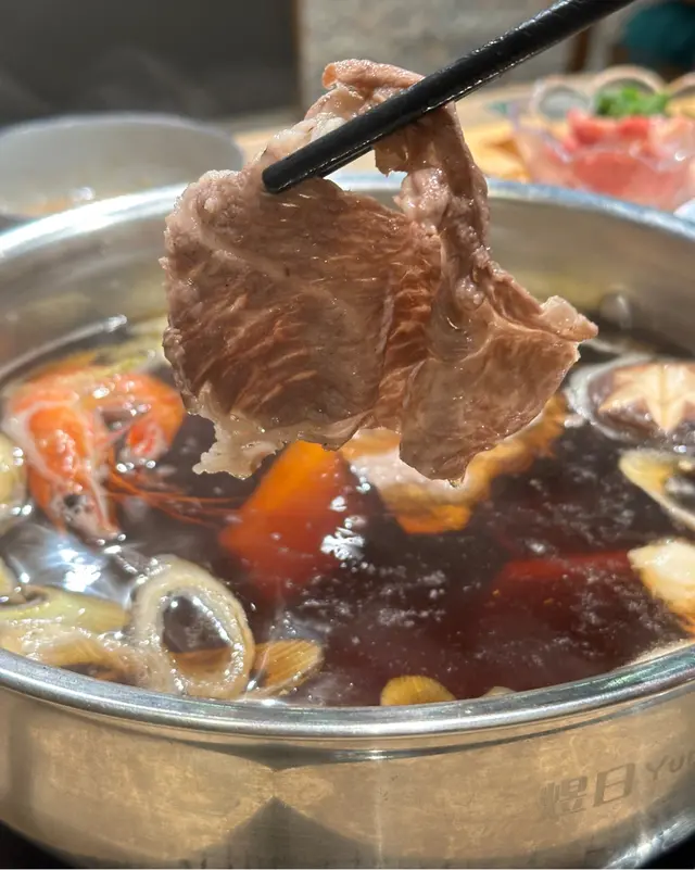 火鍋揀咗壽喜燒湯底,食得最多當然係薩摩牛牛肩胛薄切,油花靚有牛味,口感一流!! 除咗牛肉,最推介就係虎蝦同磯煮鮑魚,鮑魚點煮都唔韌,正~