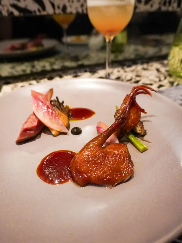 餐廳的招牌乳鴿一定要食‼️ Dry aged三日嘅乳鴿,肉質幼嫩,仲帶有煙熏味,醬汁由紅酒醋、檸檬草、黑蒜醬 整成,味道同乳鴿好夾🥰