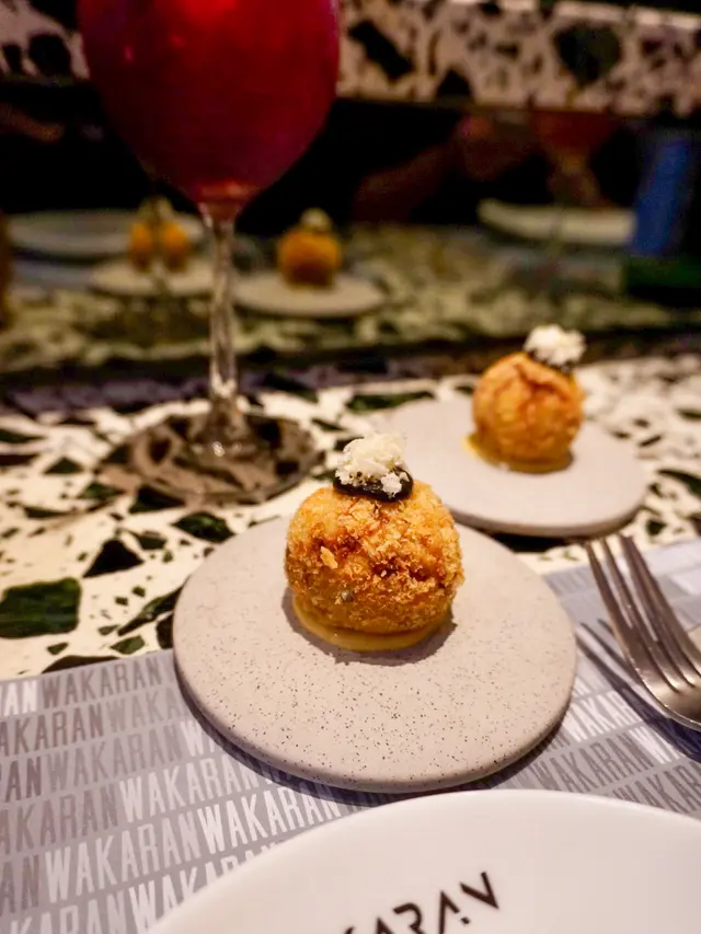 用左蟹餅概念整成炸蟹餅,蟹肉混合左酸甜嘅水果人面果、辣根、Mozzarella芝士🧀面頭仲有黑蒜醬,食落有拉絲又有鮮甜蟹肉,味道好豐富!