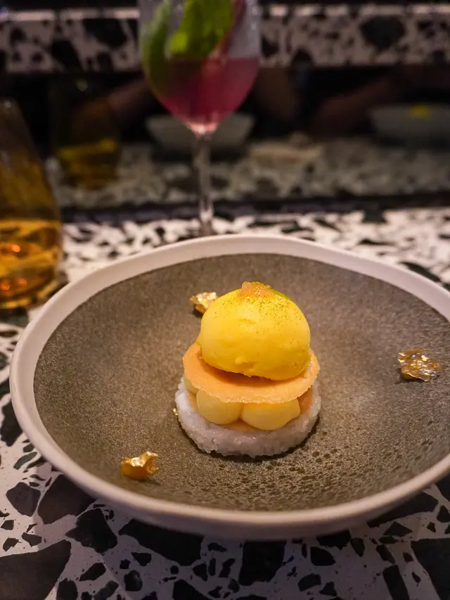 最後有芒果糯米飯,班蘭味的糯米配搭椰子cream,再加新鮮芒果、芒果sorbet,好特別!味道好有層次,我哋都覺得好好食!😍