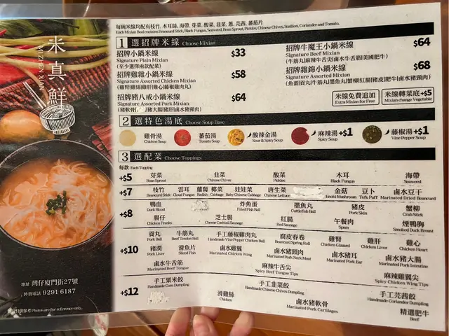 大碗足料米線推介😋 Dk Vian等级42025-10-23342 浏览 关注 好耐無食過禁抵食仲要大碗既米線,唔夠飽米線仲可以免費添加🤤大食既朋友有福啦❗️每碗都係勁足料,仲可以加餸,今次就揀左雞骨湯雞雜小鍋米線$58一碗已經包括腐皮、芽菜、韭菜、芫茜、蕃茄、酸菜、雞腎、雞絲、雞肝、雞心同埋滕椒雞肉丸我加多左$8鴨血,真係超大碗,湯底清甜,每樣餸都新鮮好味,而且唔腥🥹食內臟真係好怕腥味❗️另一碗係雞骨湯豬八戒小鍋米線$58包括豬軟骨、豬大腸、豬肝同埋滷水豬頸肉,豬軟骨軟腍腍好好味,豬勁肉滷水味夠😋新疆雞翼$32因為老闆話好辣,所以我地係走辣既,變左普通雞翼🤣麻辣豬耳沙律$12勁開胃,酸甜醒胃😋可樂$12柑桔檸檬$10 下次再試埋其他招牌米線😋23以上食记乃用户个人意见 , 并不代表OpenRice之观点。赞好分享大碗足料米線推介😋 米真鮮 https://s.openrice.com/QrLT0skbU00检举 张贴 评分5味道5环境5服务5卫生5抵食用餐途径堂食