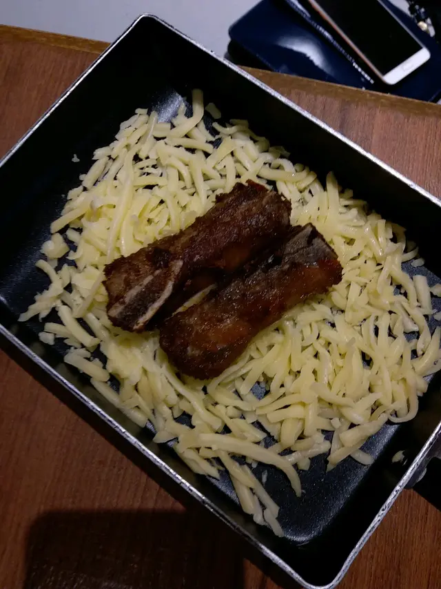 另外還有鐵板芝士骨,雖然這裏的排骨沒有韓國燒烤店的芝士骨那般肉質豐厚,但可以在大快朵頤時過過口癮也不錯。