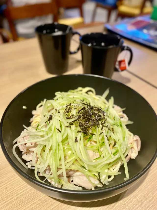 好欣賞佢地既山葵醬,係有D似混入wasabi味既沙律醬,個人好喜歡!凍食麵質更爽口彈牙,配上青瓜絲,更添口感。雞絲同青瓜絲配冷麵真係冇得輸🤩