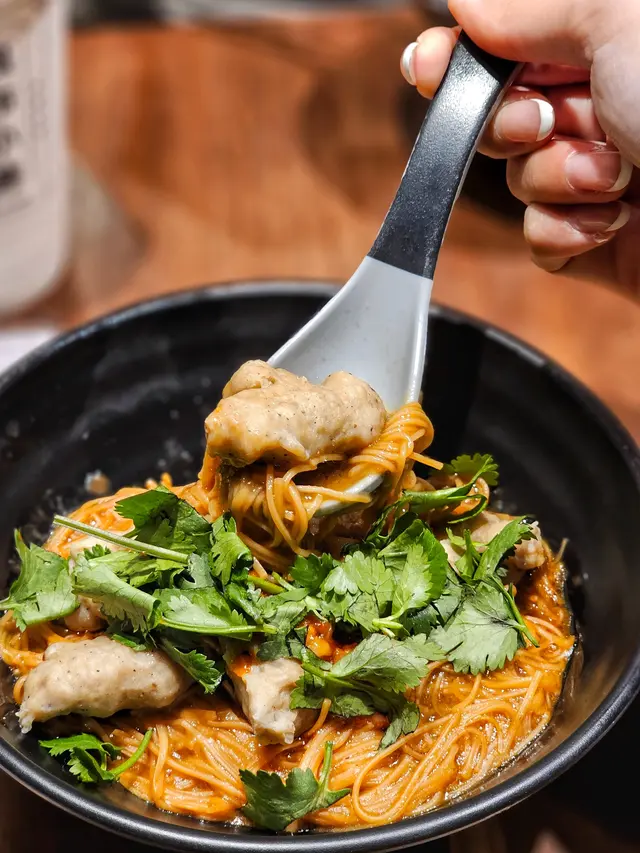 肉羹麵線配上自家炒制香蒜辣椒醬🧄🌶