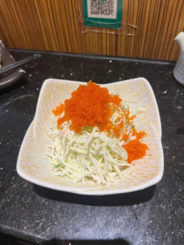 正常一開始係黎左沙律先,不過食左一半魚生飯都未黎,追佢之後先發現係漏左單,好彩知道之後都好快黎返👍蟹籽沙律我覺得好難會唔好食,只係大唔大碗,蟹籽多唔多,沙律醬夠唔夠嘅關係!依個沙律就不過不失,我覺得可以大碗啲😂😂