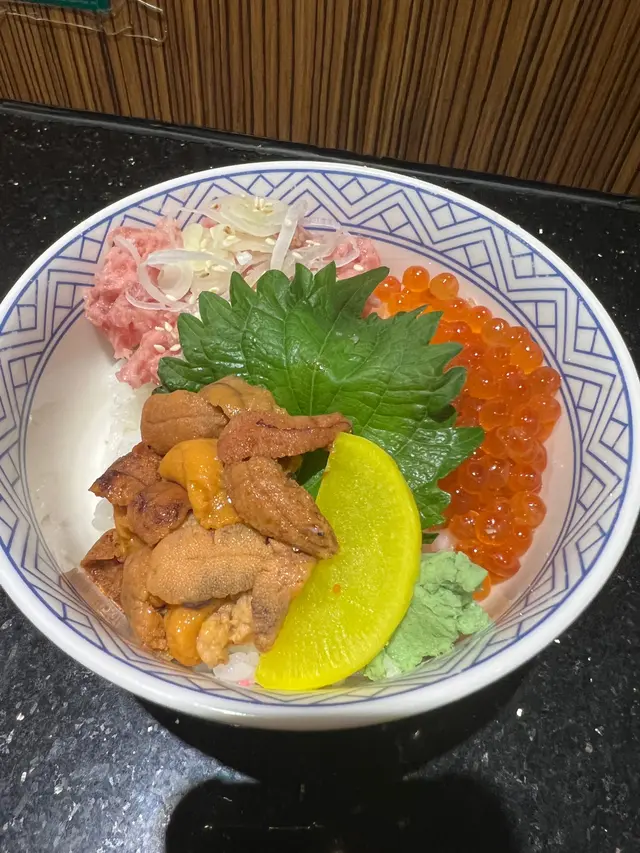 入面有海膽,牡丹蝦,三文魚,油金魚,蔥吞拿魚腩,蟹籽等等,所有魚生都好新鮮👍海膽鮮甜👍一碗入面有唔同海鮮感覺好滿足☺️唔知係太好食定真係細碗嘅關係,食完都唔係特別飽😂