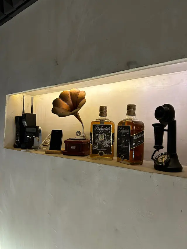 有好多懷舊擺設~好似大哥大,黑膠唱片機等等