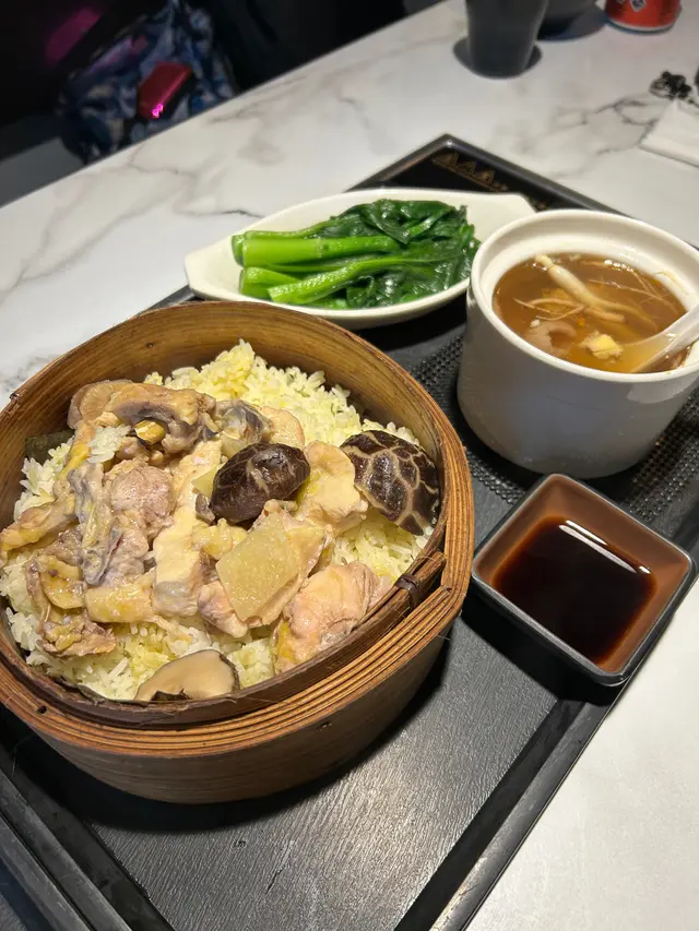 北菇滑雞籠仔蒸飯$88+人蔘燉湯$20