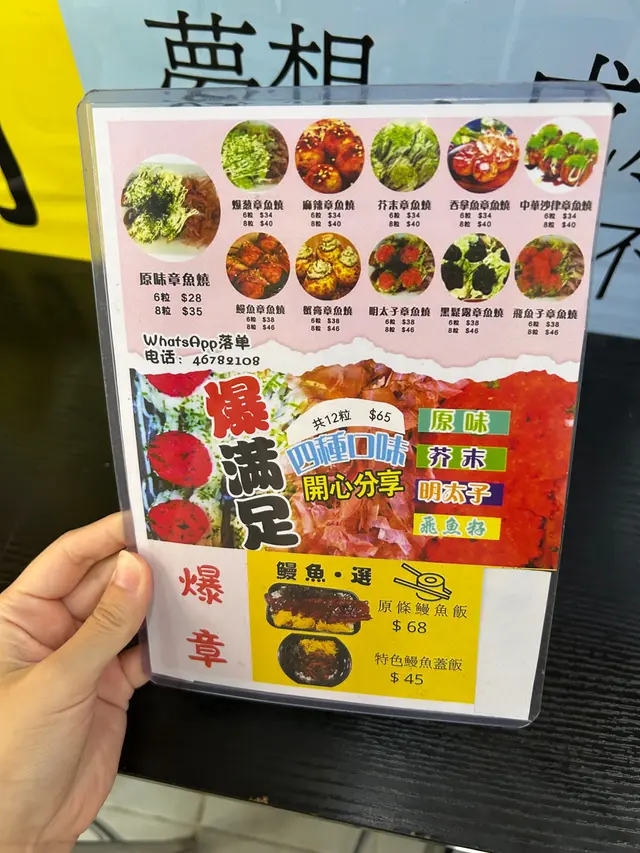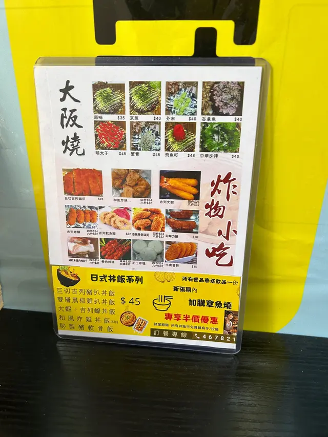 店舖有提供唔同種類嘅小丸子同大阪燒,為及附近打工仔需要中加推左不同嘅丼飯,例如鰻魚飯、炒飯等,當然仲唔少得各款適合掃街嘅炸物小食啦!估唔到咁細間店都咁多野食😨