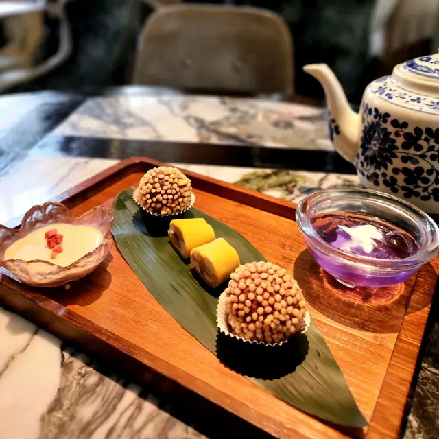 甜品十分有驚喜,茉莉花茶凍香而不膩,食到奶香嘅同時,茶味亦都好突出;椰奶藍冰粉嘅冰粉由柚子製作,椰奶香濃,春夏必選;流心紫薯球即叫即炸。奶皇香濃爆漿,小心睇熱