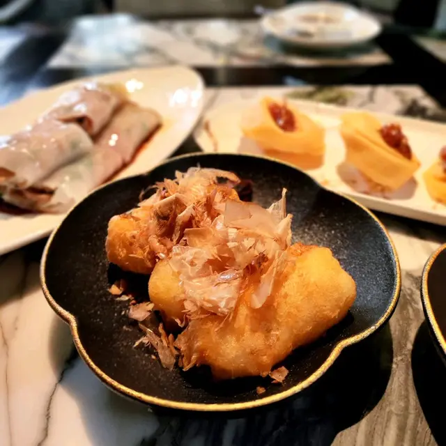 水晶蝦餃及翡翠蘿蔔鮮蝦餃係必點之選,緊緻彈牙嘅鮮蝦,配上晶瑩剔透嘅餃皮,趁熱食就最好食;雞軟骨燒賣,豬肉同脆骨嘅比例恰到好處,仲食到青花椒嘅辛香味,有新意嘅配搭;木魚花蘿蔔糕味道口感有啲似食緊章魚燒,屬於新派點心;松露山渣腐皮卷及山楂叉燒脆雲吞都係傳統點心上加上廚師嘅獨特心思,好味得嚟保留傳統嘅製作方法