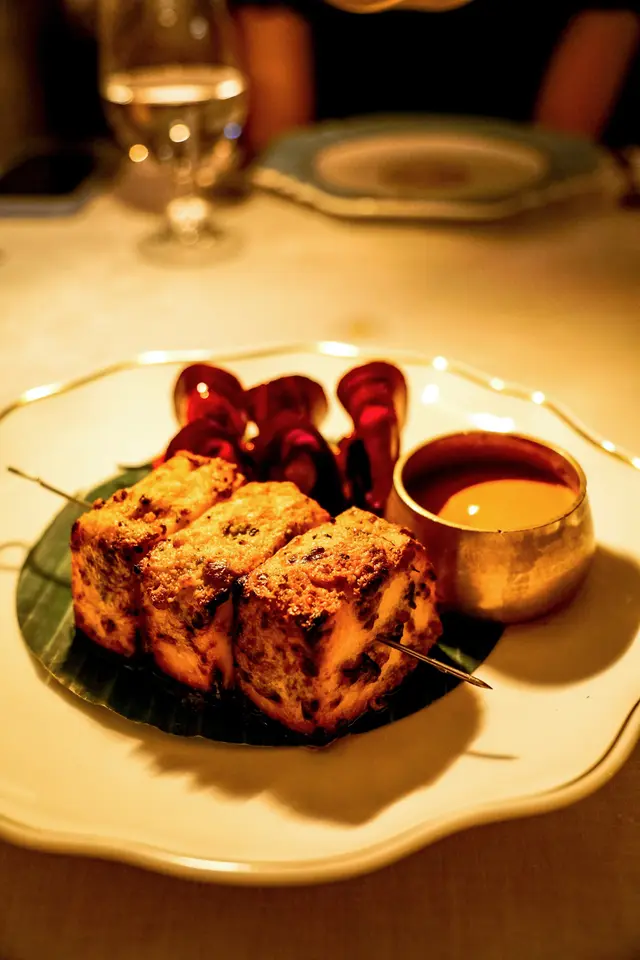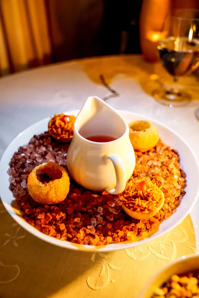 餐前小食送咗炸薯仔球 薄荷醬撻同脆球Pani Puri