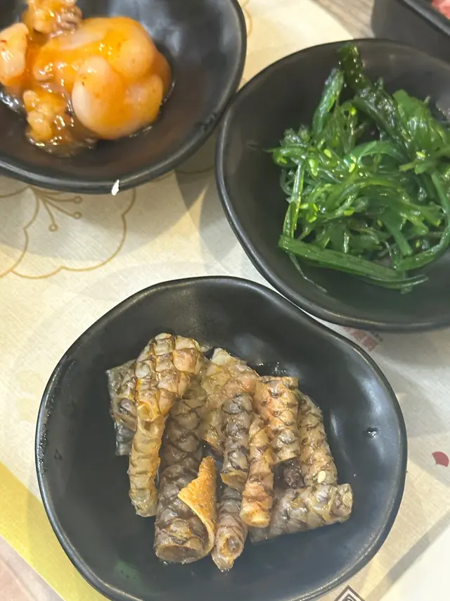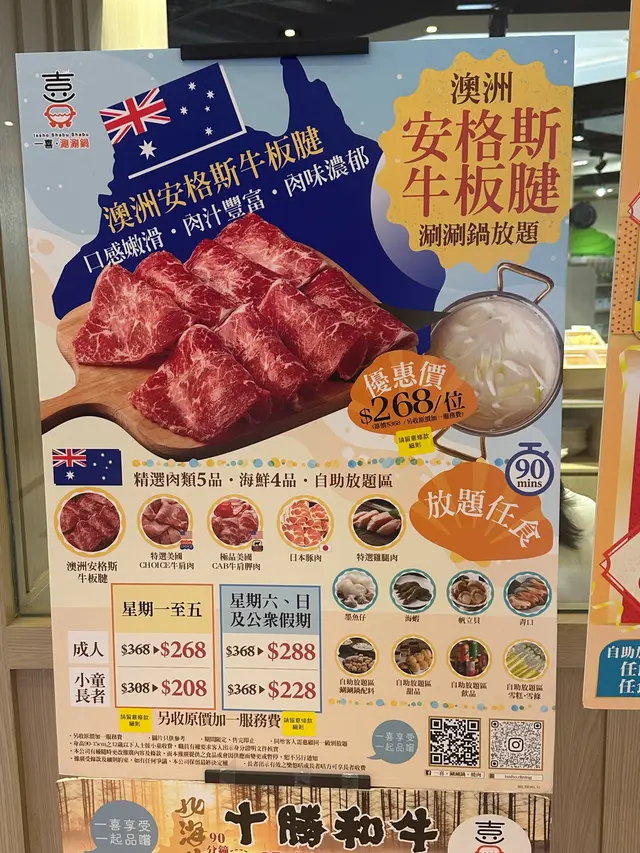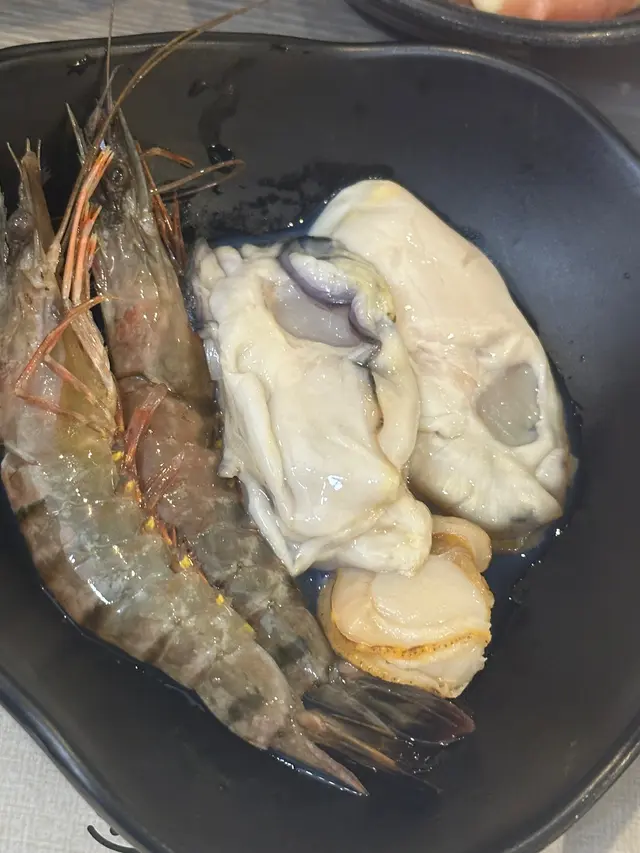 安格斯牛板腱,牛味香濃👍😚牛肩胛,雞腿肉也好鮮嫩….除咗肉類還有海鮮也不差⋯⋯廣島蠔大隻不錯!海蝦鮮甜!特別推介是魷魚丸…有鮮味爽口彈牙!