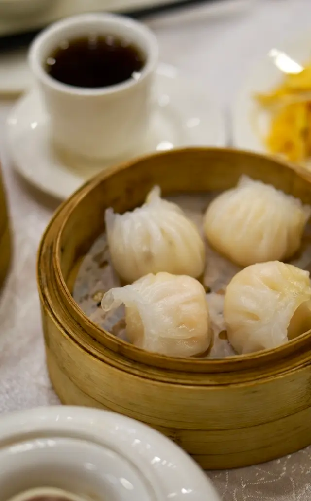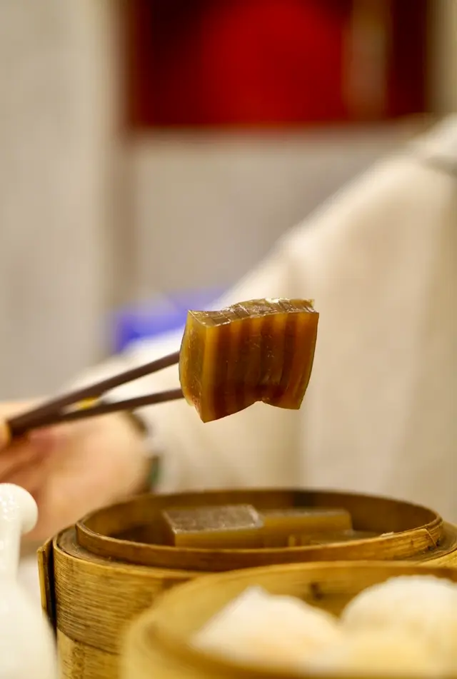 饮早茶几乎必点的【虾饺皇】,这里的出品虽然比较朴素,但莹润透光的澄面皮、工整的褶皱和饱满脆弹的馅料,无不透着一种老派的讲究,【鲜虾豆苗饺】也很喜欢。