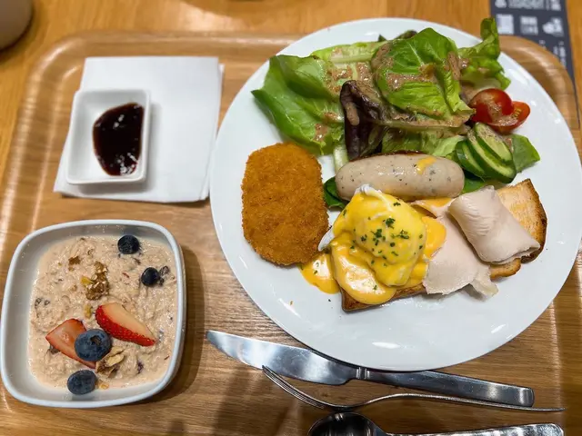 薯餅係一般日式既薯蓉整成,味道唔錯。德國腸唔會太咸。
