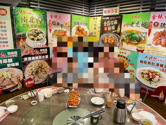 「金妹記」在尖沙咀區已開業多年仍然屹立不倒,可見人們喜歡大排檔的程度😍!今天我們只有六個人也能夠享用「金妹記」內用板間開的唯一的一個私人空間。 這一個板間房非常闊落,大圓枱足夠12人座位, 而這個板間房內四周貼滿各式餸菜,圖文並茂, 就像把放大了的Menu作為牆紙, 哈哈,果然可以讓食客更清楚自己所點的菜式的模樣以吸引食客,高招👍。只因我們也是「金妹記」的熟客,所以我們想吃什麼菜式都可以提出,「金妹記」的負責人就會幫我們予先安排,而我們今天享用的鹽焗奄仔蟹🦀就是我們要求大排檔特別安排的。
