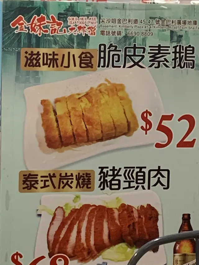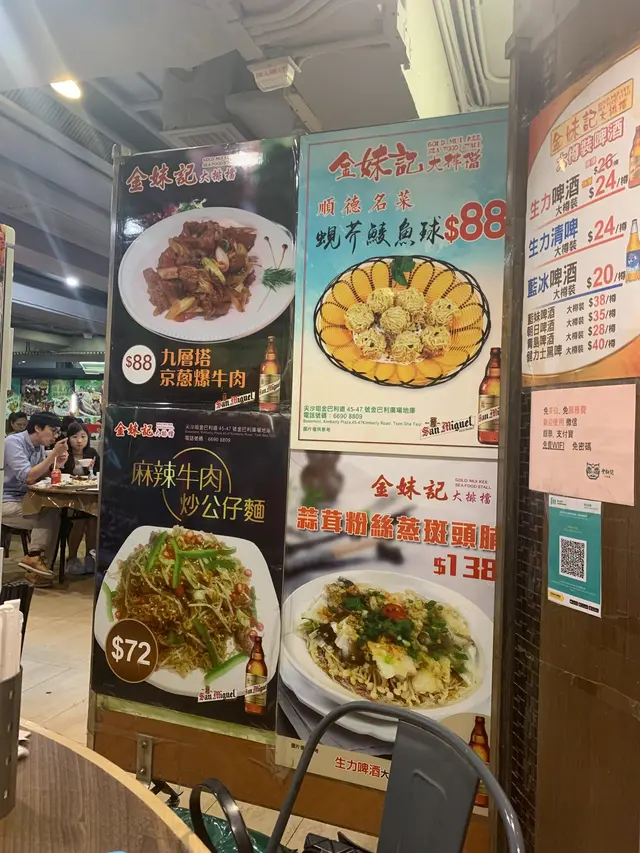 在大排檔大家都毫不拘速,可以盡情暢所欲言, 而且在大排檔其實無需要看餐牌,因為所有招牌菜式在牆壁上都清楚可見,這裏的小炒價錢非常公道,而且份量足夠。記得以前大排檔一般只有廣東菜;但是在「金妹記」蘇杭菜/四川菜都有,而且烹調味道也做得相當不錯, 相信是因為疫情前都有很多國內朋友來這裏享用鑊氣小炒,但又可選擇家鄉菜式;