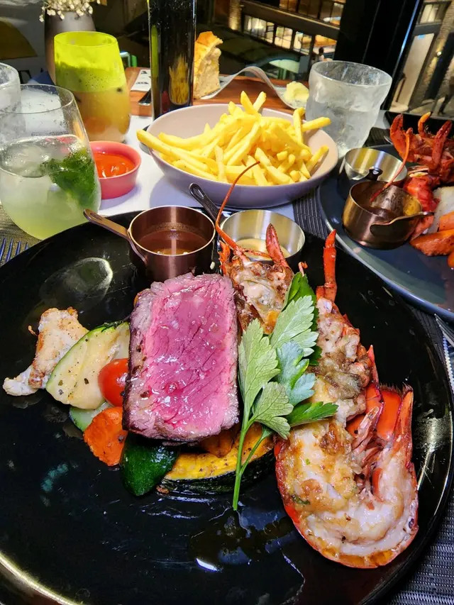西冷牛扒order左medium, 睇個樣係好準確既5成熟😍,睇落好juicy,而且食落好有牛味,5成熟口感剛好。而龍蝦不得不讚,超級鮮甜爽口又彈牙,真係好好味。