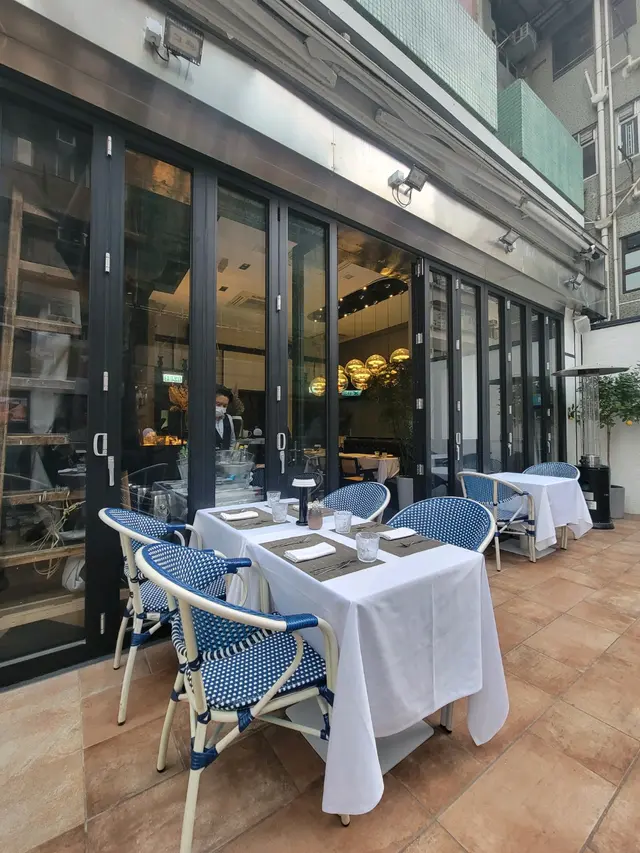上到上層有室外露天座位,設計擺設簡潔清新,而呢間法式小酒館的美食精髓在於精簡,提供一個三道菜晚市套餐,有魚,西冷牛扒同波士頓龍蝦。