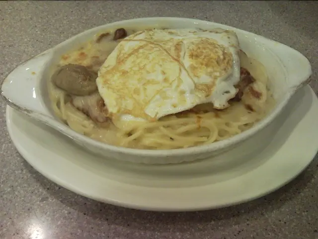 我要左焗魚煎蛋意粉; 男友要左印度咖哩雞配飯及薄餅。