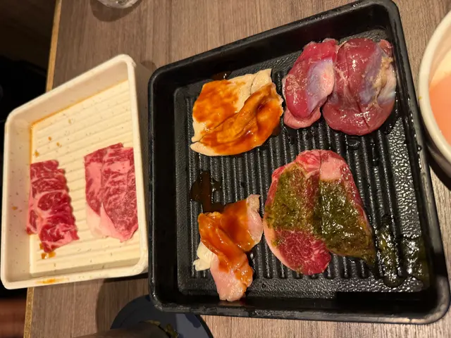 每一款牛肉以任食來講都好有質素,而且調味料齊全,除左枱上既燒肉汁,辣汁外,仲可以追加蒜片,山葵醬油漬,麻油長葱粒,令味道追加不少層次。最令🐻👨🏽開心係生啤放題都係33蚊位,可以揀Asahi或者Sapporo,為成餐燒肉生色不少。