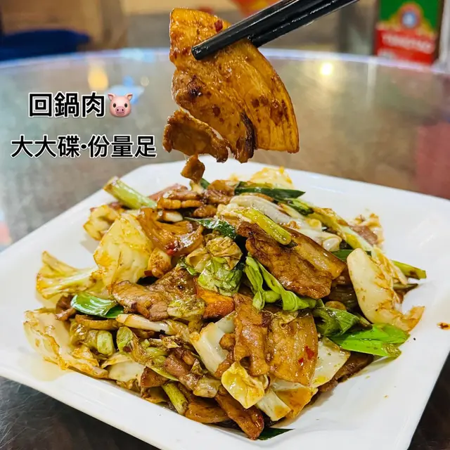 呢度小炒嘅份量比起坊間多一倍,滿滿一大碟,回鍋肉脂肪比例均勻,外皮嘅部份食落去QQ彈彈,而且一啲都唔會覺得油膩,越嚼越香,再加入椰菜、豆腐乾、京蔥等,配以香甜濃郁嘅醬汁,真係會令你忍唔住食多碗飯