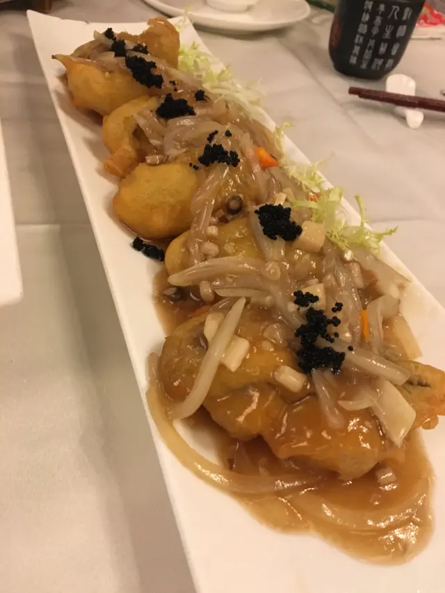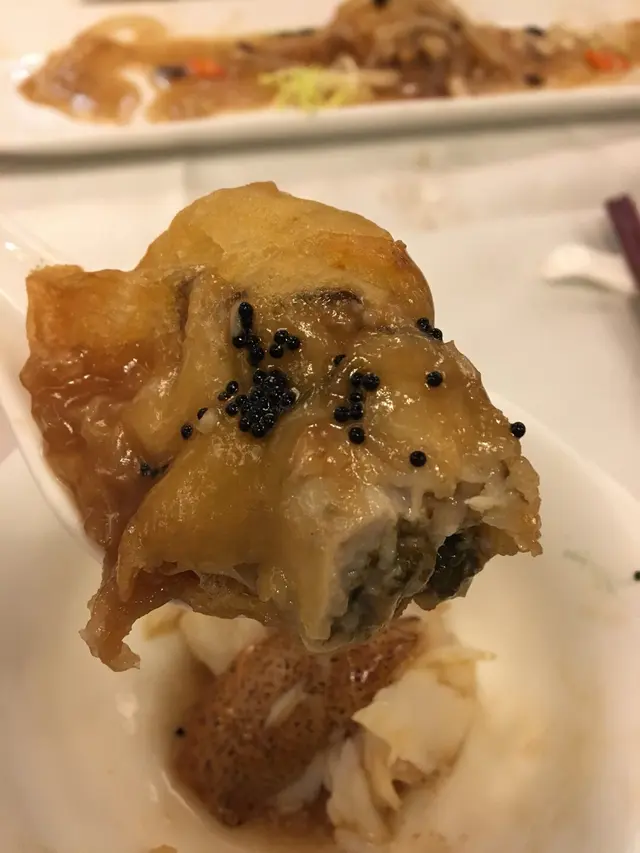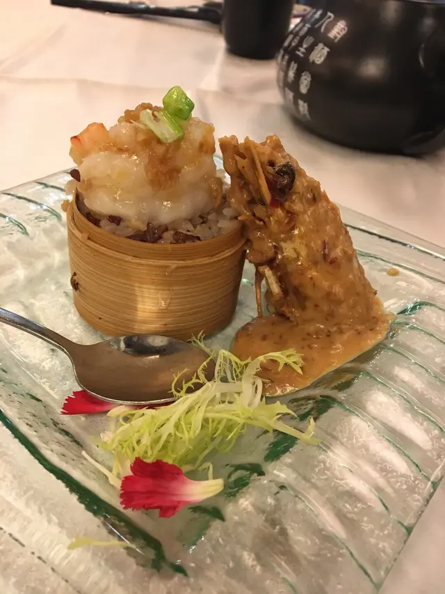 蟠龍雙弄其實是一隻大蝦兩食,蝦身與糯米同紅米用蒜蓉籠仔蒸,個籠仔是超迷你的所以d糯米飯兩啖便吃完,蝦肉彈牙感覺是新鮮的蒜蓉糯米飯亦是好吃的只是份量實在是太小,另外蝦頭煎香並配以秘製醬汁非常好食,個汁好野味,蝦頭仲有d蝦肉同蝦糕,平時好少食蝦頭既我都食晒😋,雲吞雞湯濃足料亦唔錯,砵酒蠔有6隻蠔肉夠肥厚炸得剛剛好非常juicy, 其餘3個菜不過不失,但白灼西班牙黑豚肉聽落個名都幾靚但就好像一般打邊爐豬肉片抄牙菜,味道是還可以的,只是上桌時大家都感覺不太對版,酒樓侍應服務亦不錯,但部長則有代改善,話說最後送上甜品是四小杯外貌精緻分別不同顏色貌似布甸及啫喱物體,但因感覺是很色素,見隔離枱同樣食呢款甜品但其中一杯是法色焦糖燉蛋,隔離枱要求部長將另外三杯亦轉為焦糖燉蛋,部長亦即時幫那枱客人換了,但當我們也要求更換時卻拒絕為我們更換,只藉口隔離枱是散點所以可以更換,我們當然不相信亦覺不公平啦,我們再向另一侍應要求更換,侍應便即時為我們更換了,最後埋單亦有小插曲,個蟠龍雙弄明明餐牌列明散叫一份$68,但卻收了$88,問另一部長解釋稱此菜沒有散叫只可叫餐再加但要$88,餐牌是錯的遲d會換,因家人不想再拗,數目不多所以就算數,但本人就認為這樣做法是違反商品說明條例囉,認為酒樓應檢討。