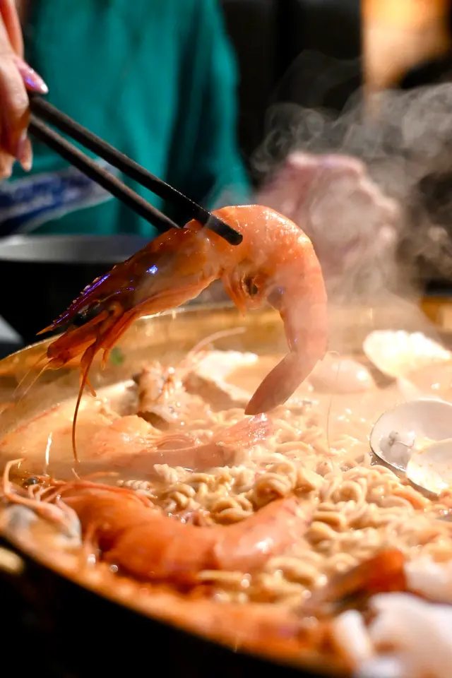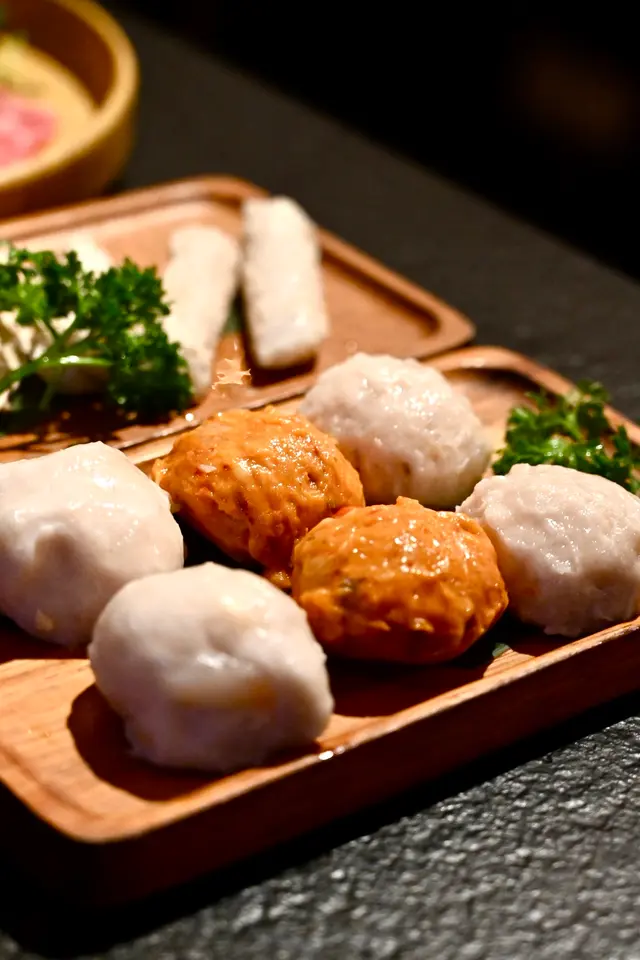 食完海鮮和麵,仲可以加配料變火鍋,一鍋兩食,職員會重新加入上湯和冬蔭公湯,風味依然👍🏻 點了幾樣火鍋配料,必點手打三式丸$78