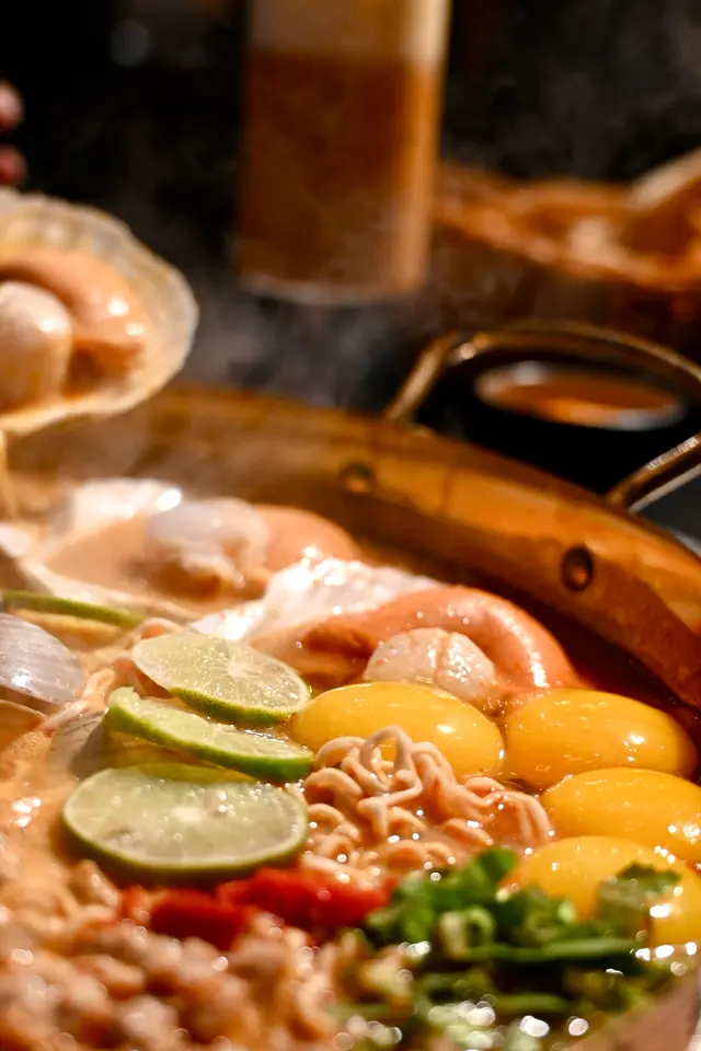 材料除了麵,還有份量相當足夠的海鮮🦞,有扇貝、蝦、魷魚、蜆,樣樣都非常新鮮。上枱時有幾隻生蛋黃,打散後和冬蔭湯麵混合食更添好味!