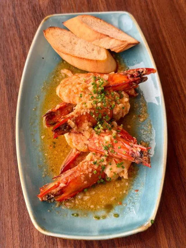 西班牙油蒜大蝦 Gambas, Garlic-Chilli Prawns:Gambas al Ajillo 又係西班牙🇪🇸經典 Tapa 之一,呢度係有啲新派/港式做法,加蒜蓉辣椒連蝦頭🦐蝦身就去咗蝦殼,幾好味,我諗響西班牙🇪🇸都應該食唔到咁嘅做法🤣