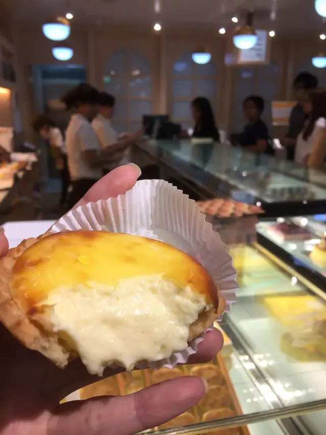 呢個半熟芝士撻人氣咁旺係人都想試啦!但講真要排上兩個鐘去買,我又真係唔會囉!今日大約六時經過見仲有人龍,我問問店員大約何時會賣完呢?店員答我大約七時,於是我打算七時再到碰碰運氣,應該開店咁耐,都無咁多人買啦(我心想)。。。結果我七時再到,真係只有十數人排隊,於是我立刻排隊啦!正當我諗緊買幾多的時候,店員叫得返最後一盤供售賣!呀。。。好緊張呀!唔知我買唔買到呢?最後到我的時候只剩一件,唉,好過無啦,買咗之後就地正法!一啖咬落去味道無的想像中濃,芝士係半固體狀態,都可以叫好食啦!但同我想像的差不多,不算驚喜!