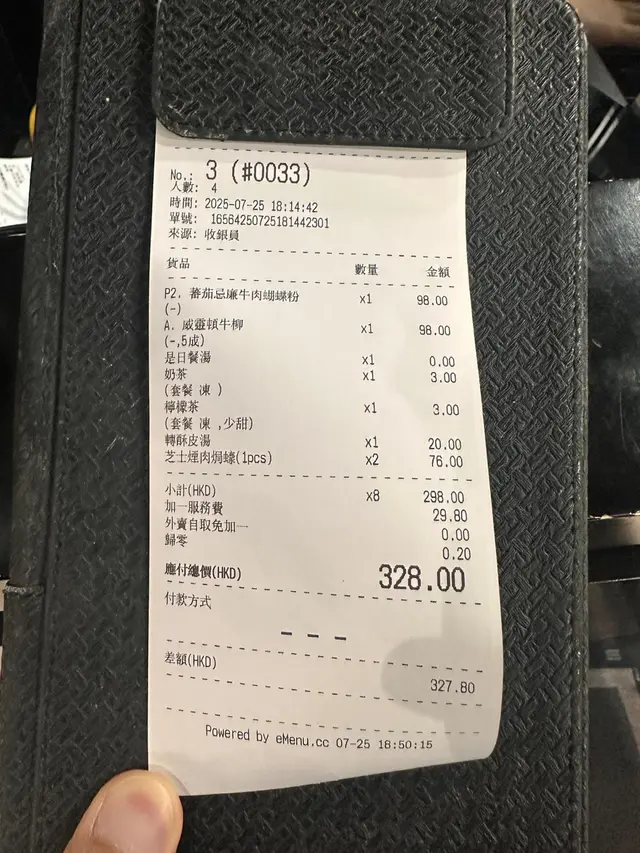 講到最現實嘅一環——價錢。對比番同一條街其他餐廳,無論係同類西餐定係其他菜式,呢間專門店嘅定價(尤其係主打嘅威靈頓牛扒)似乎未夠吸引。食物質素OK,但未去到「超班」嘅程度,性價比喺激烈嘅旺角戰場上顯得有啲尷尬。你會覺得佢唔難食,但同一筆錢,喺隔離街可能食到更有特色、份量更足或者環境更優勝嘅選擇。