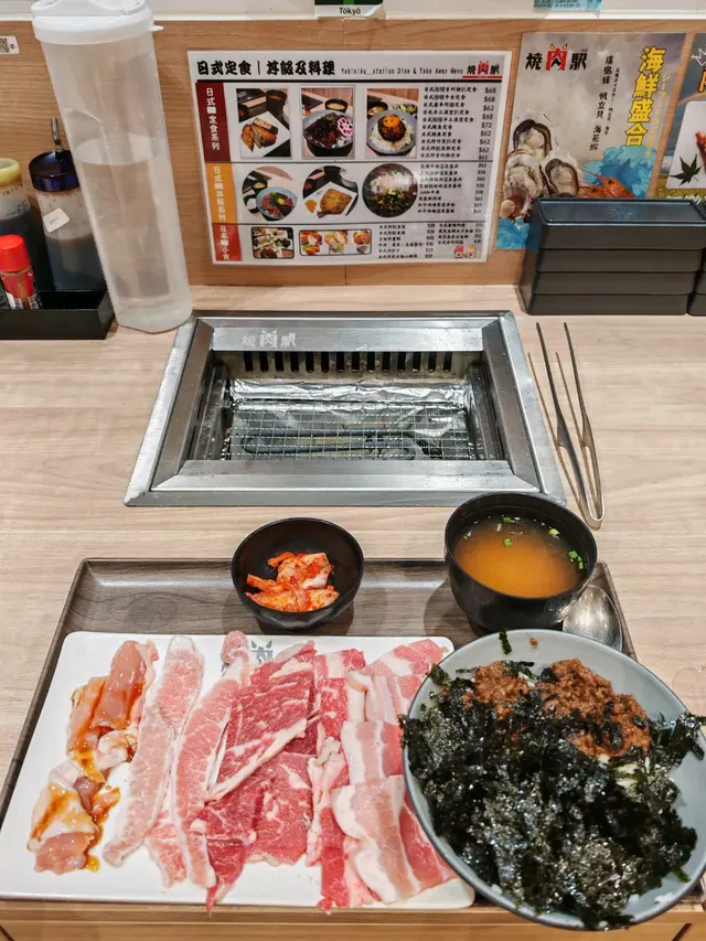 只此一間嘅燒肉駅,位於熱鬧嘅旺角,餐廳佈置有好多日本元素。 一人燒肉當然就係每人有一個自己嘅火爐自己燒肉食, 桌面上除咗有火爐之外,仲有足夠空位放到餐盤,座位亦唔會擠迫。 我選擇坐我最鍾意嘅吧檯,一排人一齊燒,雖然係各自燒,但又唔會有孤獨感,特別有feel。