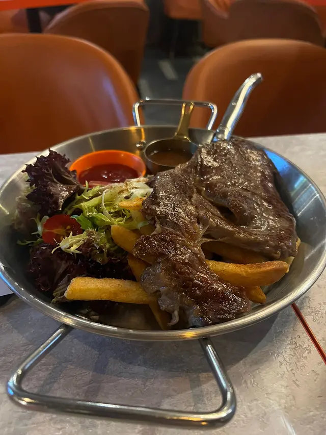 呢份安格斯肉眼扒真係值得推介!牛扒煎得恰到好處,外面帶有焦香嘅「燶邊」,內裡肉質保持粉嫩多汁,充分展現咗安格斯牛肉應有嘅濃郁肉香同豐腴口感。簡單以鹽同黑椒調味,已經足夠帶出牛肉嘅鮮美,火候掌控得宜,絕對係餐廳嘅信心之作。鍾意食牛嘅朋友,呢度嘅肉眼扒絕對係必試之選。