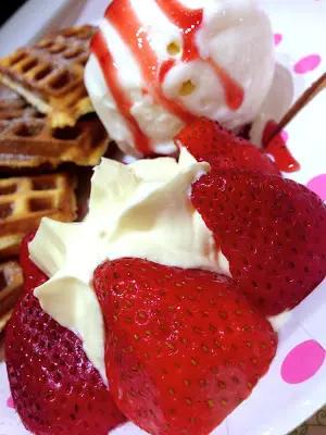 草莓鬆餅配原味乳酪雪糕 $65(原價) $52(八折)