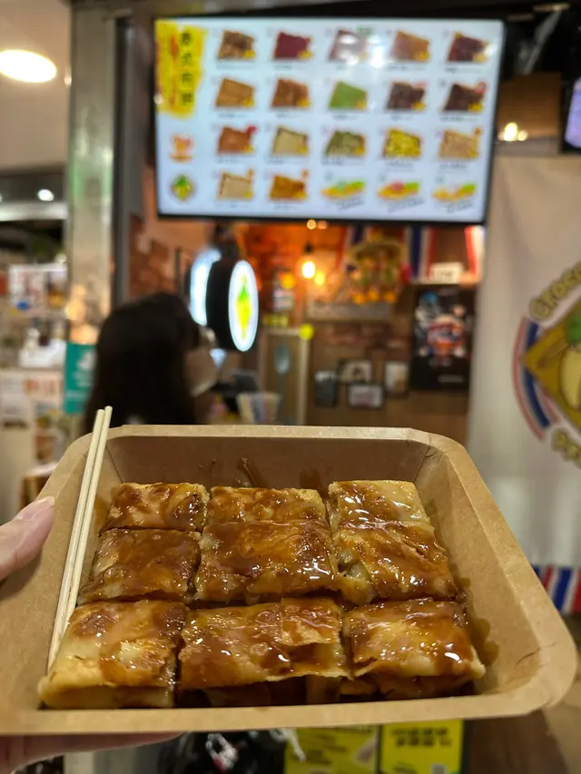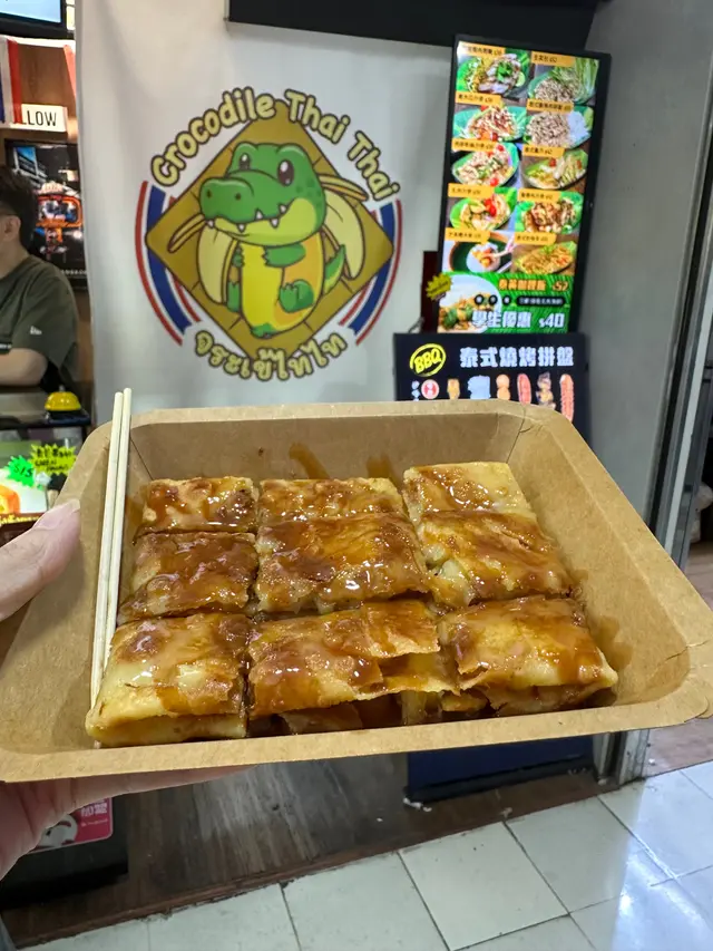 之後塊煎餅皮斷成3層,我夾上黎,已經忍唔住要爆粗!乜X野黎?我好似成緊啲疏風嘅油炸點心!塊皮唔知咩料硬到乜咁!完全同泰式香煎煎餅扯唔上關係,香蕉🍌係好少因為餅底細件,仲要原來香蕉冇加蛋煮… 所謂嘅泰奶亦冇咩味嫁,好稀!呢件垃圾應該只可以出現係垃圾桶,我想上前同店主講點解咁難食可以賣比人食?