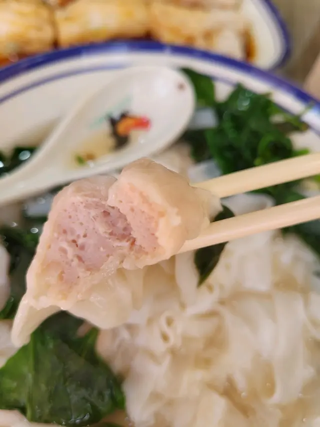 河粉比較薄,而且比較碎濕濕,食到後尾更加碎到夾唔起,失敗,湯底比較單調,飲落都有d味精,之後好頸渴,失敗,肉雲吞唔知係咩肉,斷估係豬肉加左d粉溝埋,無肉汁,唯獨幾好既係雲吞皮幾薄,都係失敗,食到尾都真係食唔落。