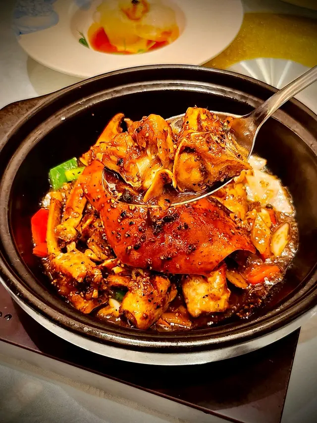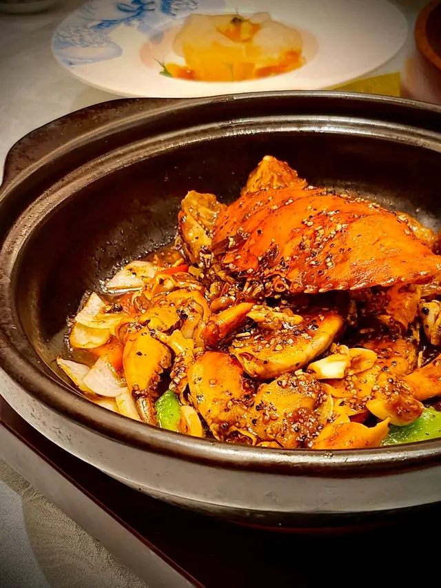 主菜大紅袍乳鴿同星加坡胡椒蟹亦非常高水準。前者應該係我食過最皮脆肉嫩嘅乳鴿,沒有之一。而且以大紅袍香清雅香搭配乳鴿香,意想不到地配合;胡椒蟹絕對啱哂喜歡濃味人士,辛、辣、胡椒香,完全滲入蟹肉!