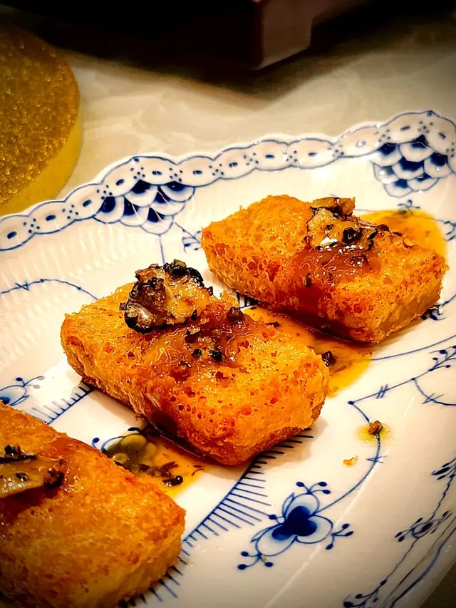 荔浦黃金匣絕對印象深刻。酥脆外層裡面包住綿滑芋頭蓉,外酥內嫩。加淋上秘製豬頭肉黑松露醬汁,美味非常,難怪成為得獎菜式。
