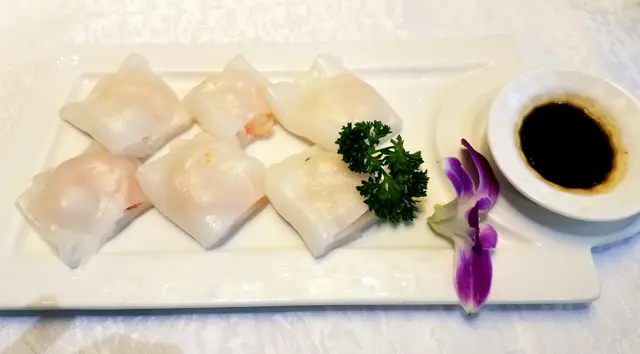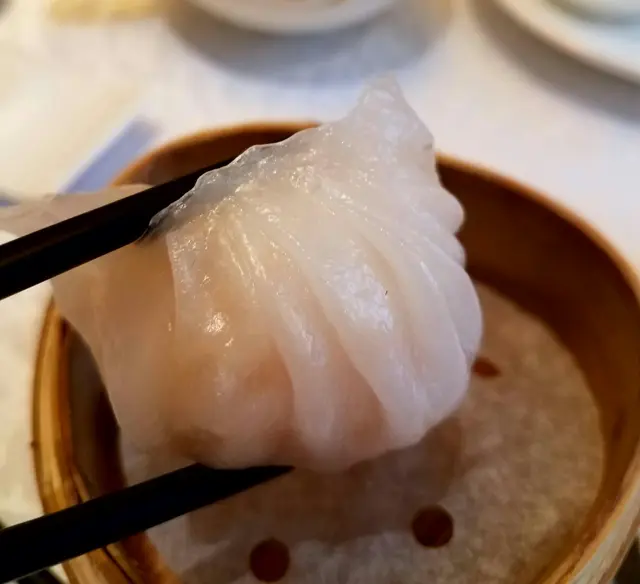 近年高級粵菜酒家時興做法,【生拆鮮蝦腸 $48】已經預先切開一份份,方便來飲茶的一家大小分食,但整體份量其實只有兩條傳統腸粉,都幾貴吓。腸粉皮雖然唔係好夠薄,做唔到半透明的後果,但黏稠度剛剛好,並沒有黏著筷子或黏牙,這一點相當重要。蝦肉乃是原隻鮮蝦,鮮甜爽口彈牙,較一般酒樓好食。
