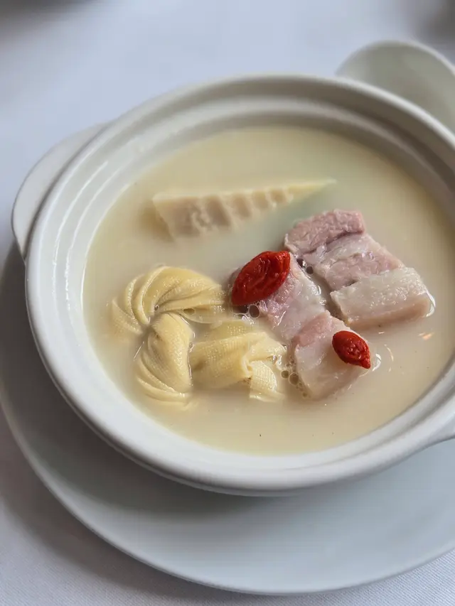 湯品是上海的經典醃篤鮮,相信大家都知道這就是咸肉燉鮮肉的意思,還會加入冬筍、百葉結,很豐富的。是日嚐到的出品,冬筍爽脆無渣,鮮肉層次分明,仲有口感煙韌的百葉結跟奶白色勁鮮香的湯頭,非常出色,我罕有地喝得一滴不剩。